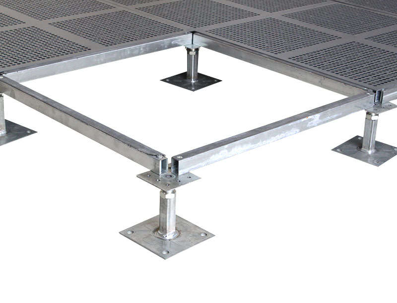 全钢组成,表面采用HPL或者PVC冲孔贴面,面板选用SPCC硬质钢板,高压冲孔结构,四周导电嵌条镶边,支架横梁选用钢材模压成型,螺杆高度可调节。
